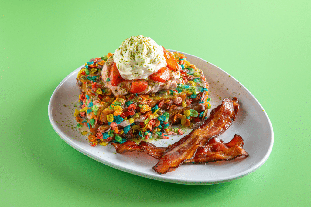 STRAWBERRY RAINBOW CRUNCH STUFFED FRENCH TOAST By Dorothy Beal in Posted On August 22, 2025 STRAWBERRY RAINBOW CRUNCH STUFFED FRENCH TOAST Fruity Pebbles crusted brioche French toast stuffed with strawberry cheesecake, topped with lemon glaze, macerated strawberries, whipped cream, matcha powdered sugar dust